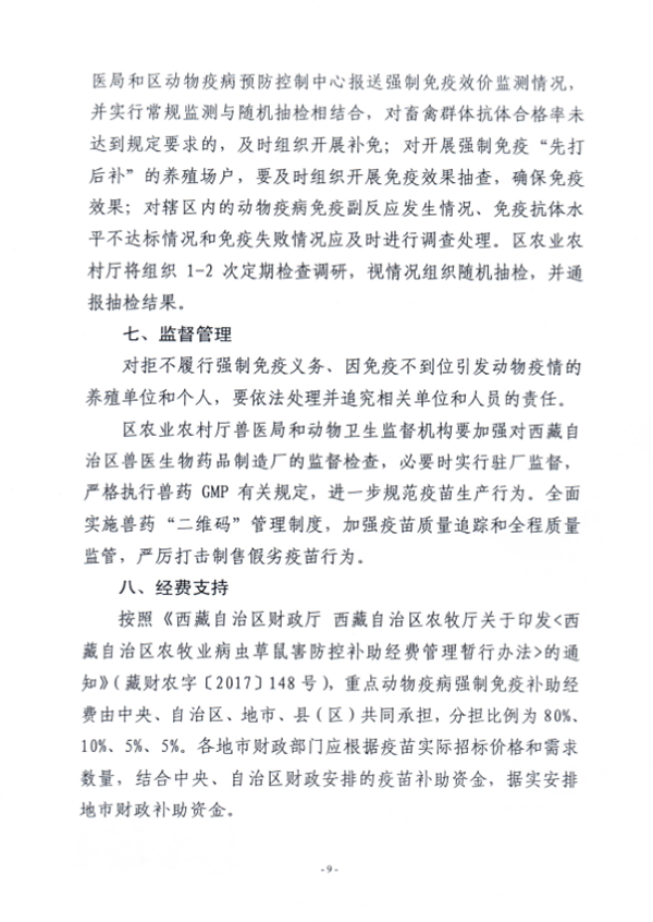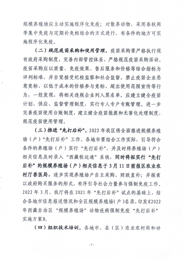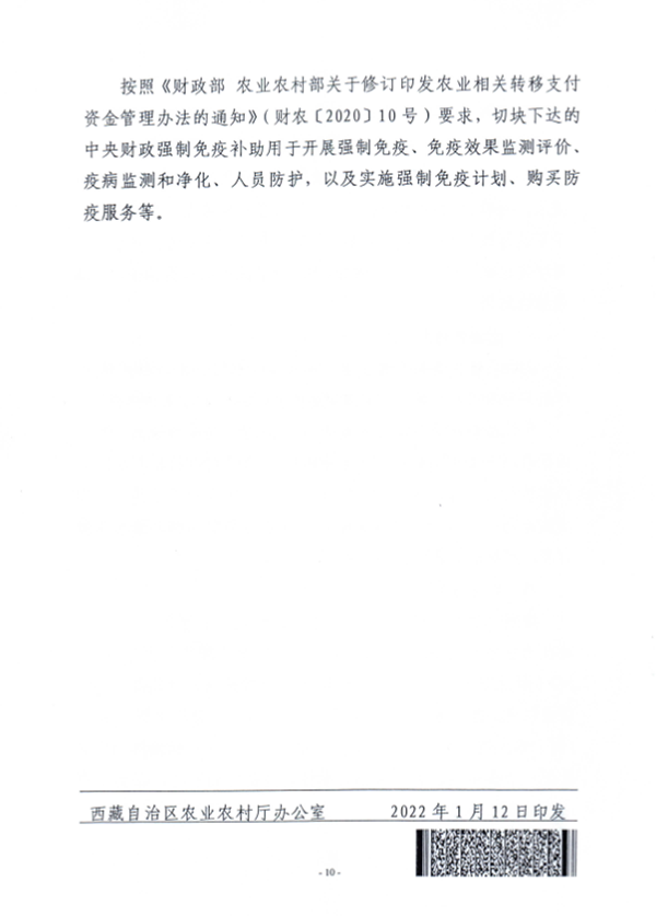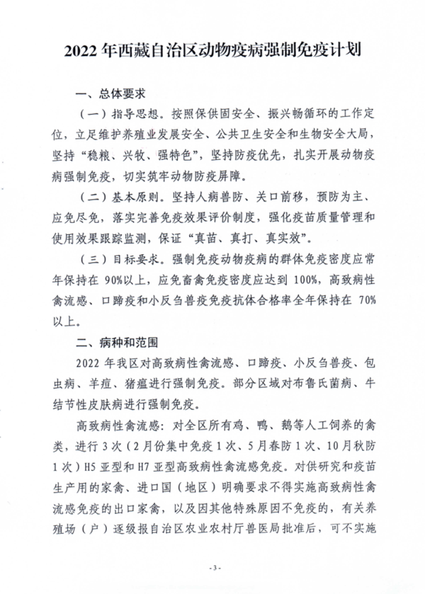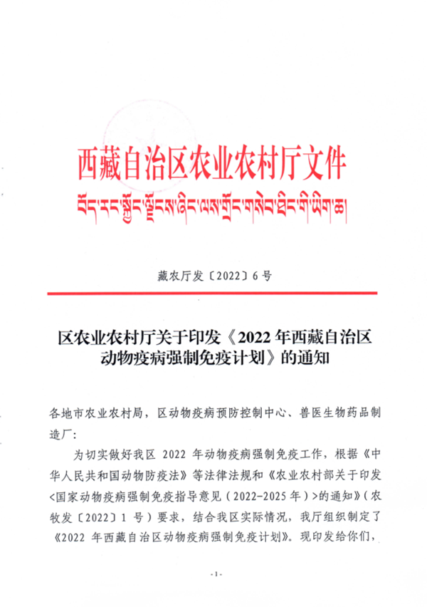 区农业农村厅关于印发《2022年西藏自治区动物疫病强制免疫计划》的通知