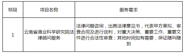 1.项目名称:云南省渔业科学研究院法律顾问服务