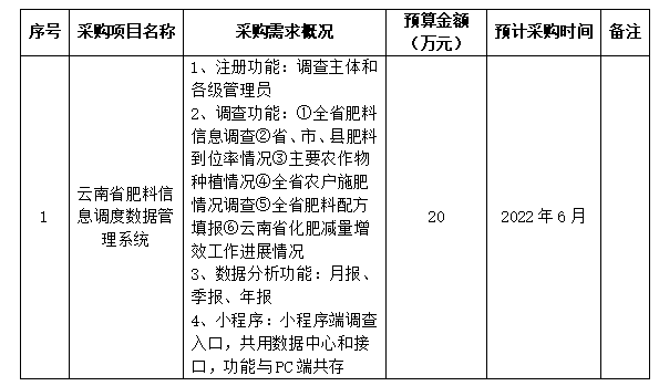 云南省土壤肥料工作站肥料信息调度数据管理系统政府采购意向