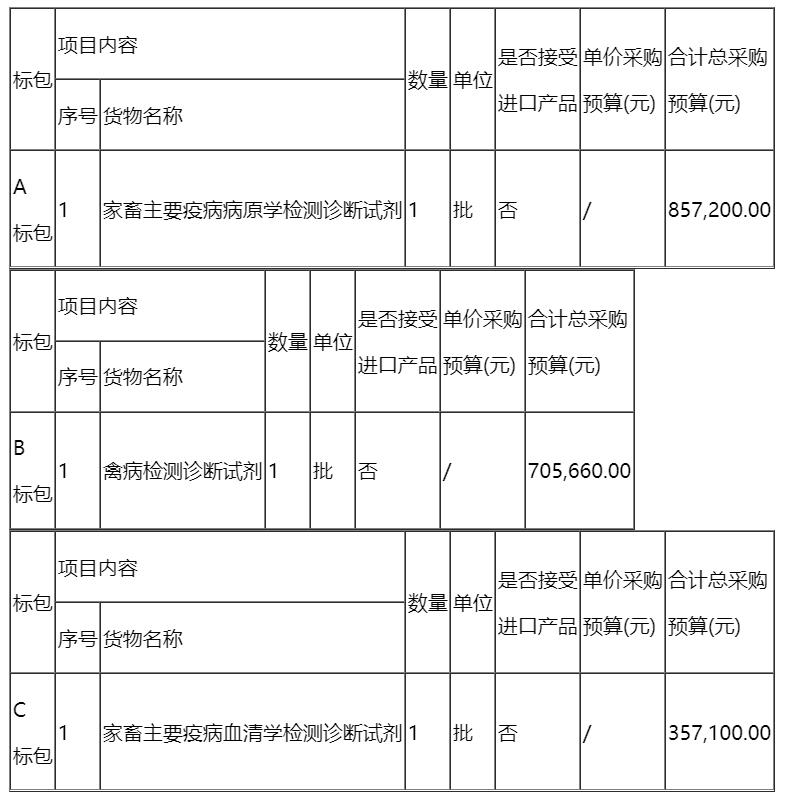 2.1招标范围:云南省动物疫病预防控制中心2022年省级动物疫病治理项目兽医实验室用试剂采购(本项目招标共分为三个标包,一个标包内的所有项目内容单独为一个整体,在投标时投标人应对一个标包内的全部内容进行整体编制文件、递交文件及报价,不得缺项漏项,即按标包号分标包进行投标。投标人可以参加一个标包或同时多个标包投标)。