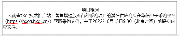 项目名称:云南省水产技术推广站土著鱼增殖放流苗种采购项目