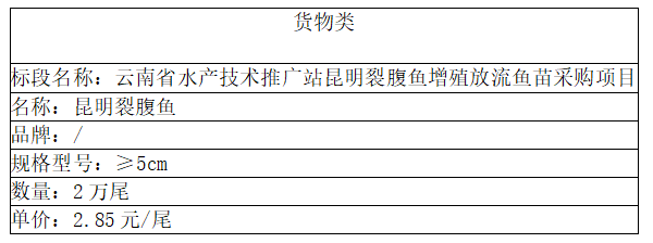标段名称:云南省水产技术推广站昆明裂腹鱼增殖放流鱼苗采购项目