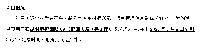 云南省农业农村厅利用国际农业发展基金贷款云南省乡村振兴示范项目管理信息系统(MIS)开发竞争性磋商公告