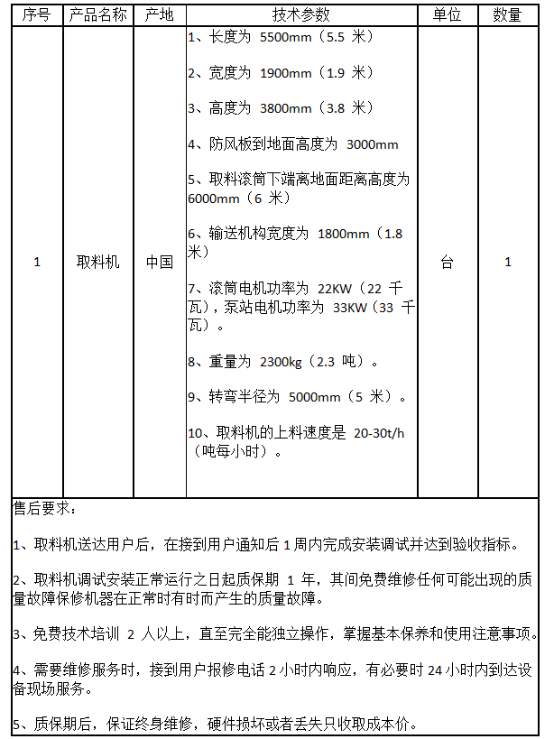 3.项目内容及服务要求:根据承担的基层农技推广体系改革建设需求,为顺利开展和完成基层农技推广体系改革建设工作,2022年需要采购取料机。详见附件。