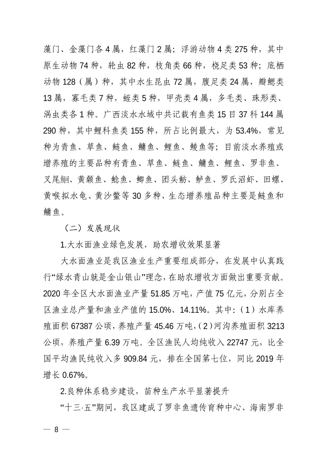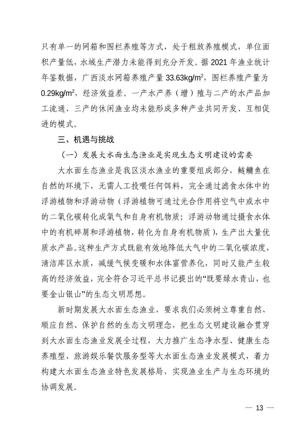 自治区农业农村厅关于印发广西“十四五” 大水面生态渔业高质量发展规划的通知(桂农厅发〔2022〕90 号)