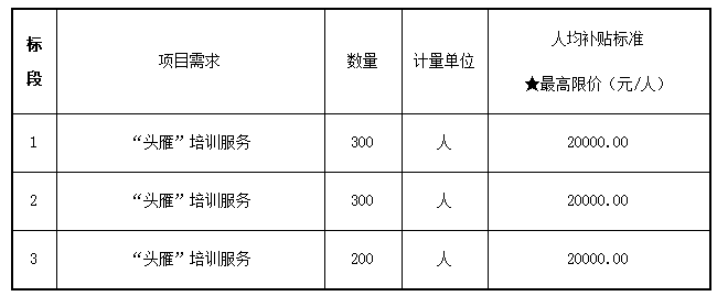 5.采购需求:按照《农业农村部 财政部关于印发〈乡村产业振兴带头人培育“头雁”项目实施方案〉的通知》(农人发〔2022〕3号)、《云南省农业农村厅 云南省财政厅关于印发〈云南省乡村产业振兴带头人培育“头雁”项目实施方案〉的通知》(云农人〔2022〕49号)的要求,将新型农业经营主体带头人培育为乡村产业振兴领头雁,预计800人次(招标培训人数、培训内容、资金使用,上级有新的政策规定、任务指标和工作要求的,遵照执行)。