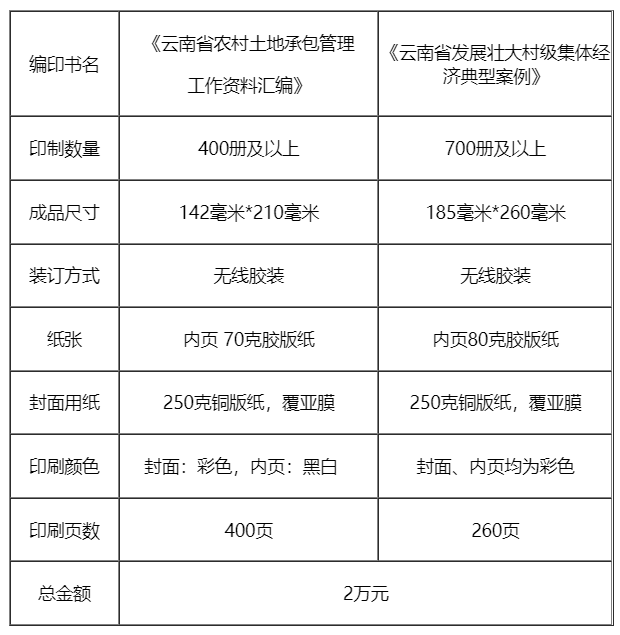 云南省农村经济经营管理站关于印制《云南省农村土地承包管理工作资料汇编》和《云南省发展壮大村级集体经济典型案例》询价采购的公告