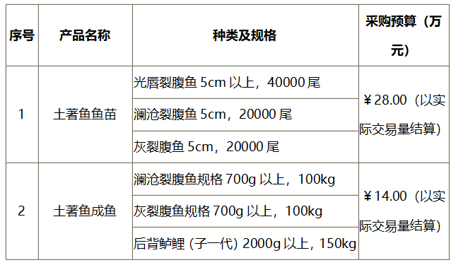 2.项目名称:云南省渔业科学研究院土著鱼鱼苗及成鱼采购项目