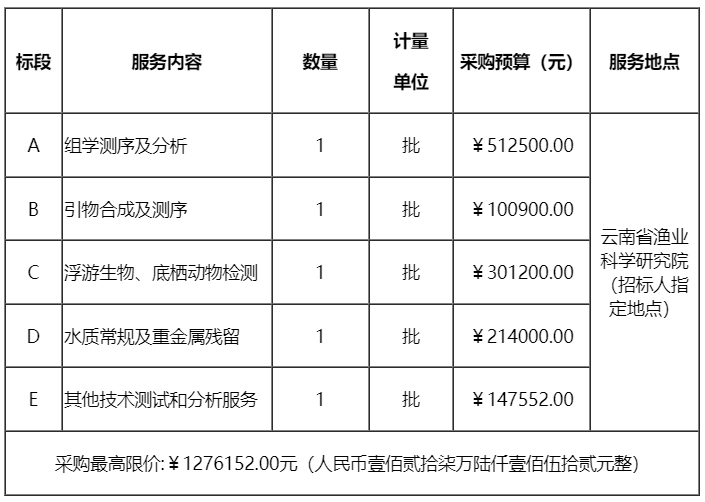 云南省渔业科学研究院水生动植物技术测试分析服务公开招标公告