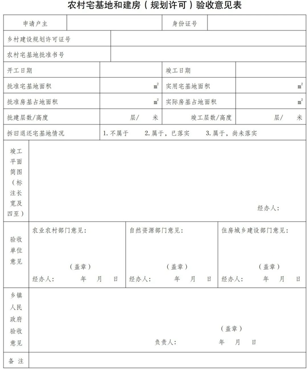 (五)乡镇人民政府验收。房屋竣工后,村民向乡镇人民政府提出农村宅基地和建房(规划许可)验收申请。乡镇人民政府要及时组织竣工验收,实地检查是否按照批准面积、位置等使用宅基地,是否按照质量安全要求建房。对符合要求的,自收到验收申请15日内,出具农村宅基地和建房(规划许可)验收意见表;不符合要求的,指导督促村民进行整改,直至符合验收要求。通过验收的,可向当地不动产登记部门申请办理不动产登记。