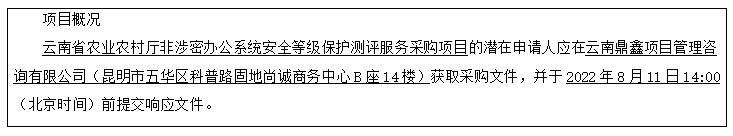 云南省农业农村厅非涉密办公系统安全等级保护测评服务采购项目竞争性磋商公告
