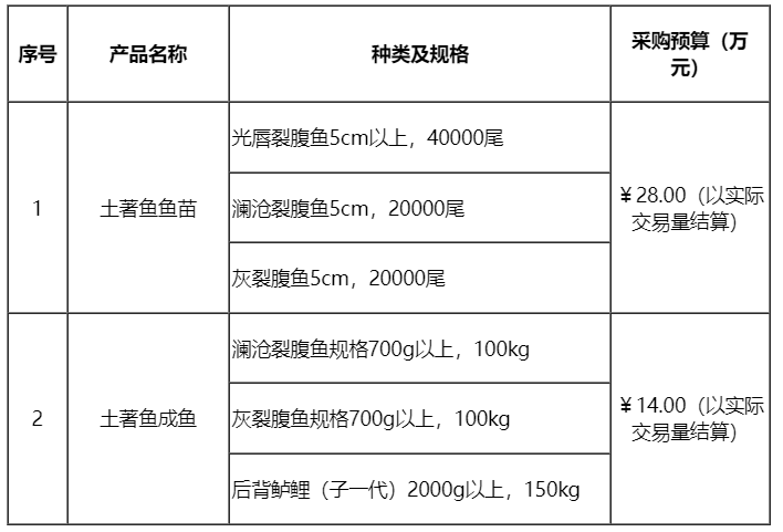 拟采购的货物或服务的说明:土著鱼鱼苗及成鱼