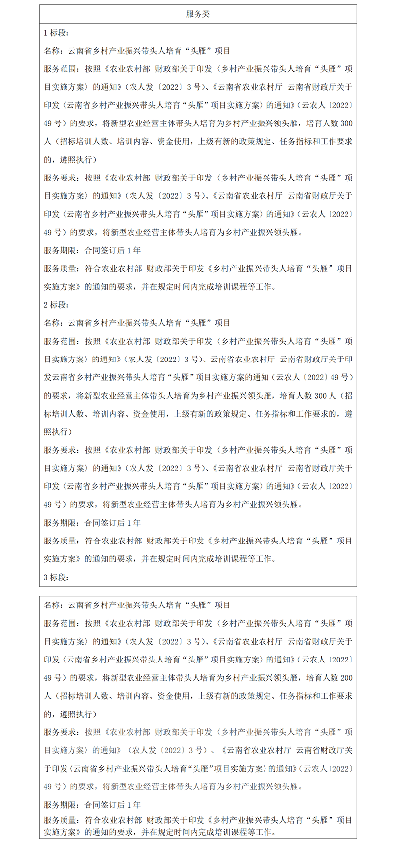云南省乡村产业振兴带头人培育“头雁”项目中标结果公告