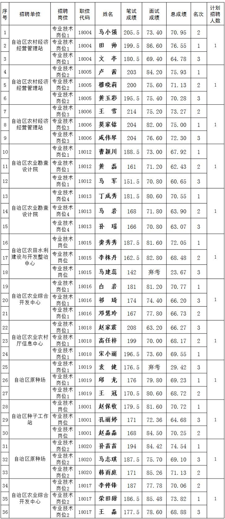 2022年自治区农业农村厅事业单位公开招聘工作人员面试成绩暨总成绩公告(7月30日面试人员)