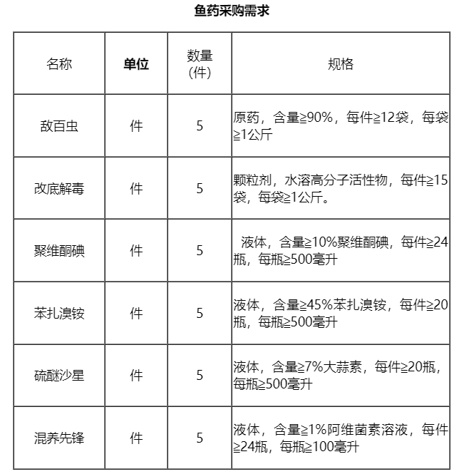云南省渔业科学研究院关于渔具鱼药询价采购的公告