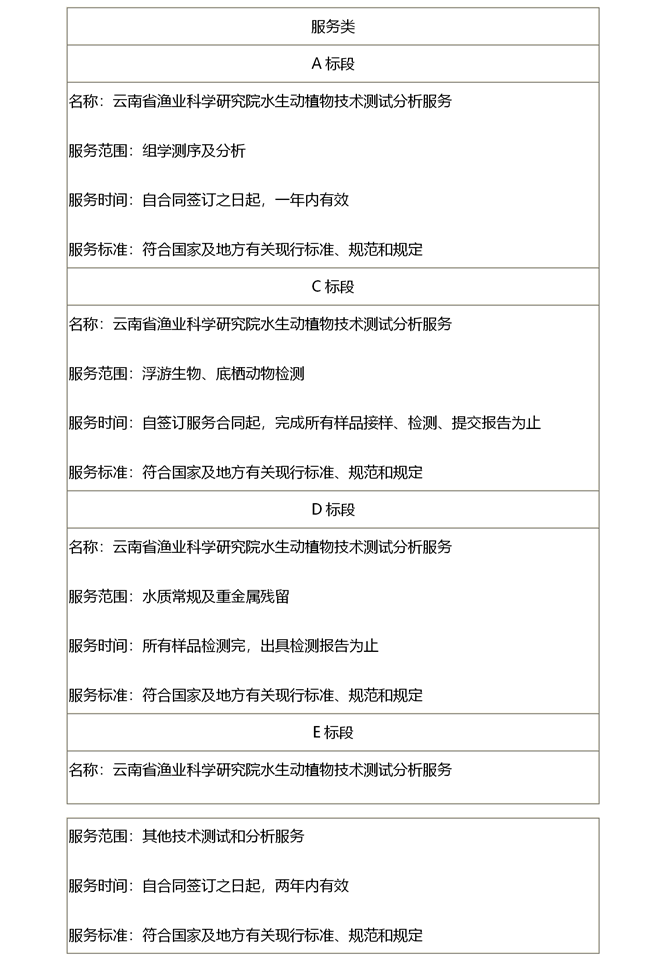 二、项目名称:云南省渔业科学研究院水生动植物技术测试分析服务