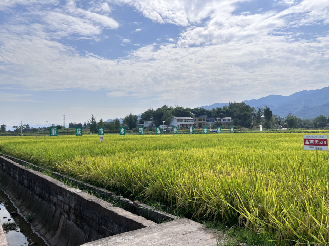 位于大足区拾万镇的市级水稻品种展示基地。记者 栗园园 摄