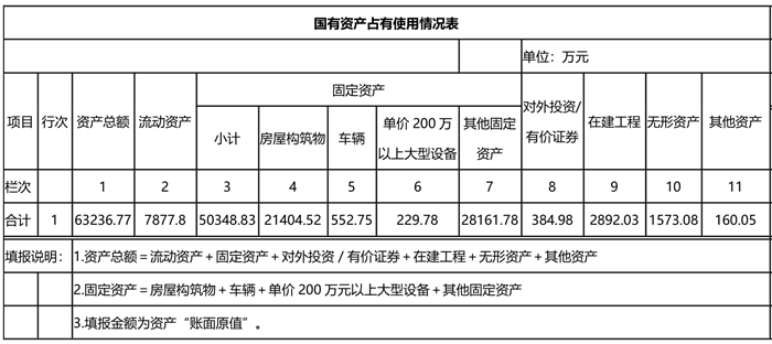 截至2021年12月31日,云南省农垦局资产总额63236.77万元,其中,流动资产7877.80万元,固定资产(原值)50348.83万元,对外投资及有价证券384.98万元,在建工程2892.03万元,无形资产(原值)1573.08万元,其他资产160.05万元(具体内容详见附表)。与上年相比,本年资产总额减少1222.70万元,其中固定资产增加1865.49万元。处置房屋建筑物0平方米,账面原值0万元;处置车辆1辆,账面原值8.65万元;报废报损资产47项,账面原值114.89万元,实现资产处置收入1.35万元;出租房屋122193.34平方米,账面原值8436.54万元,实现资产使用收入1045.54万元。