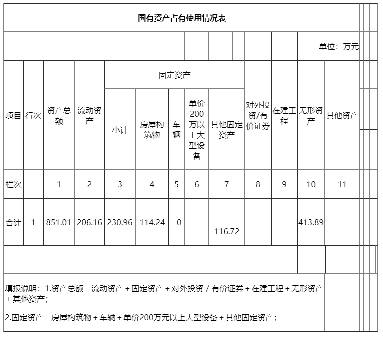二、国有资产占用情况