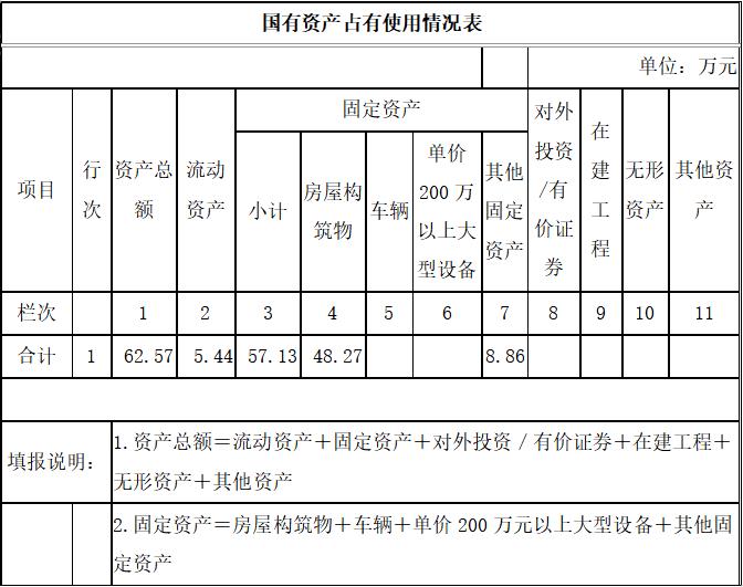 截至2021年12月31日,云南省农业机械安全监理总站部门资产总额62.57万元,其中,流动资产5.44万元,固定资产57.13万元,对外投资及有价证券0万元,在建工程0万元,无形资产0万元,其他资产0万元(具体内容详见附表)。与上年相比,本年资产总额减少89.70万元,其中固定资产增加0.51万元。处置房屋建筑物0平方米,账面原值0万元;处置车辆0辆,账面原值0万元;报废报损资产14项,账面原值4.01万元,实现资产处置收入0万元;出租房屋0平方米,账面原值0万元,实现资产使用收入0万元。