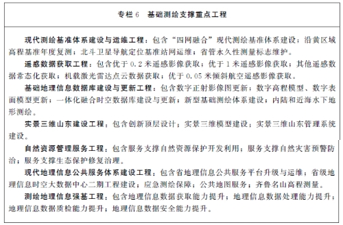 (1)严格实施“项目跟着规划走”。全面梳理《山东省国民经济和社会发展第十四个五年规划和2035年远景目标纲要》以及省级重点专项规划确定的重大基础设施项目,纳入省、市、县三级国土空间规划,统筹布局,合理预留空间。