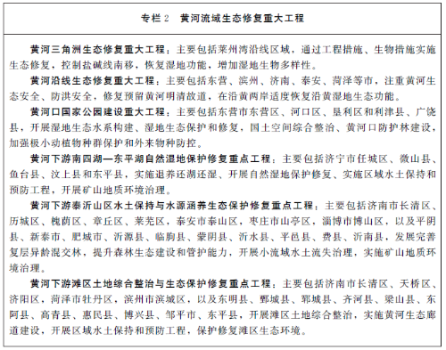 (4)加强重点区域生态保护修复。加强黄河流域、南四湖、东平湖、大运河、鲁中南山地丘陵、鲁东低山丘陵、海岸线生态保护带以及各类自然保护地、海湾、湿地等重点生态区域的保护修复。