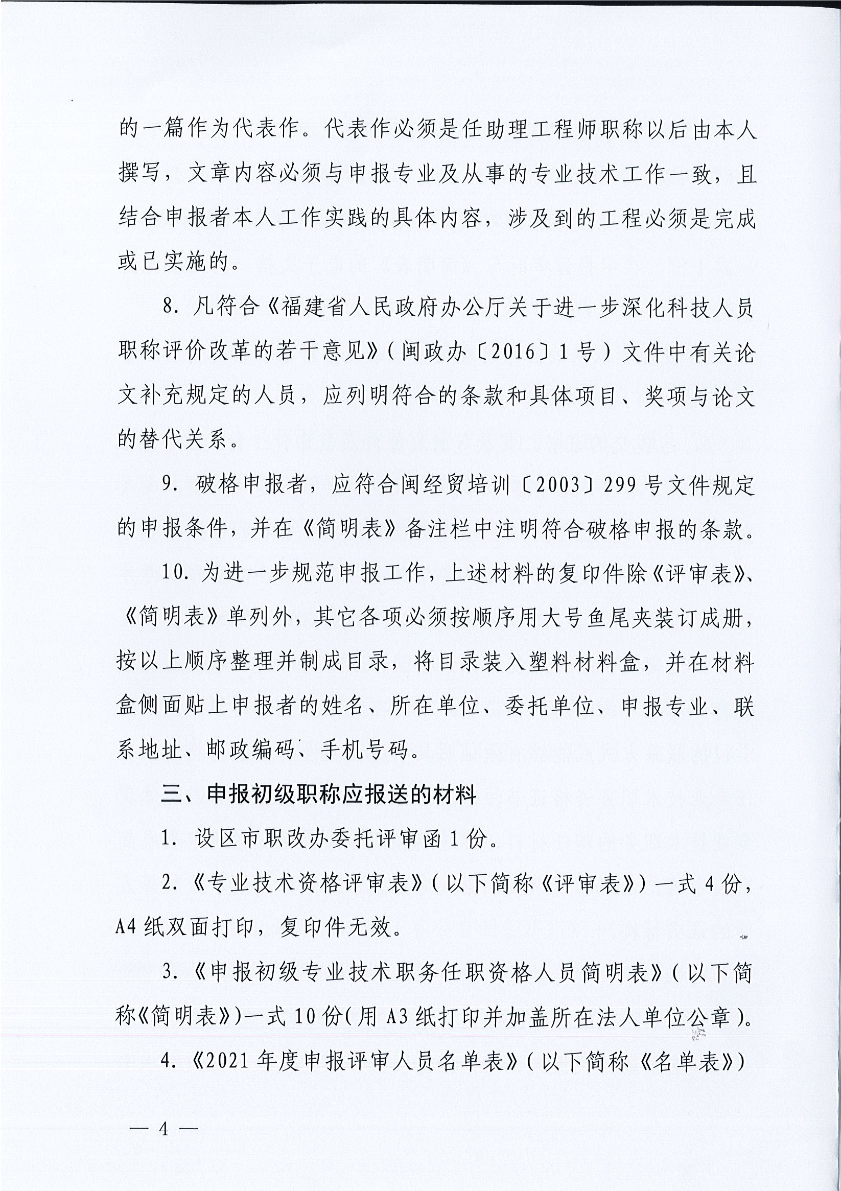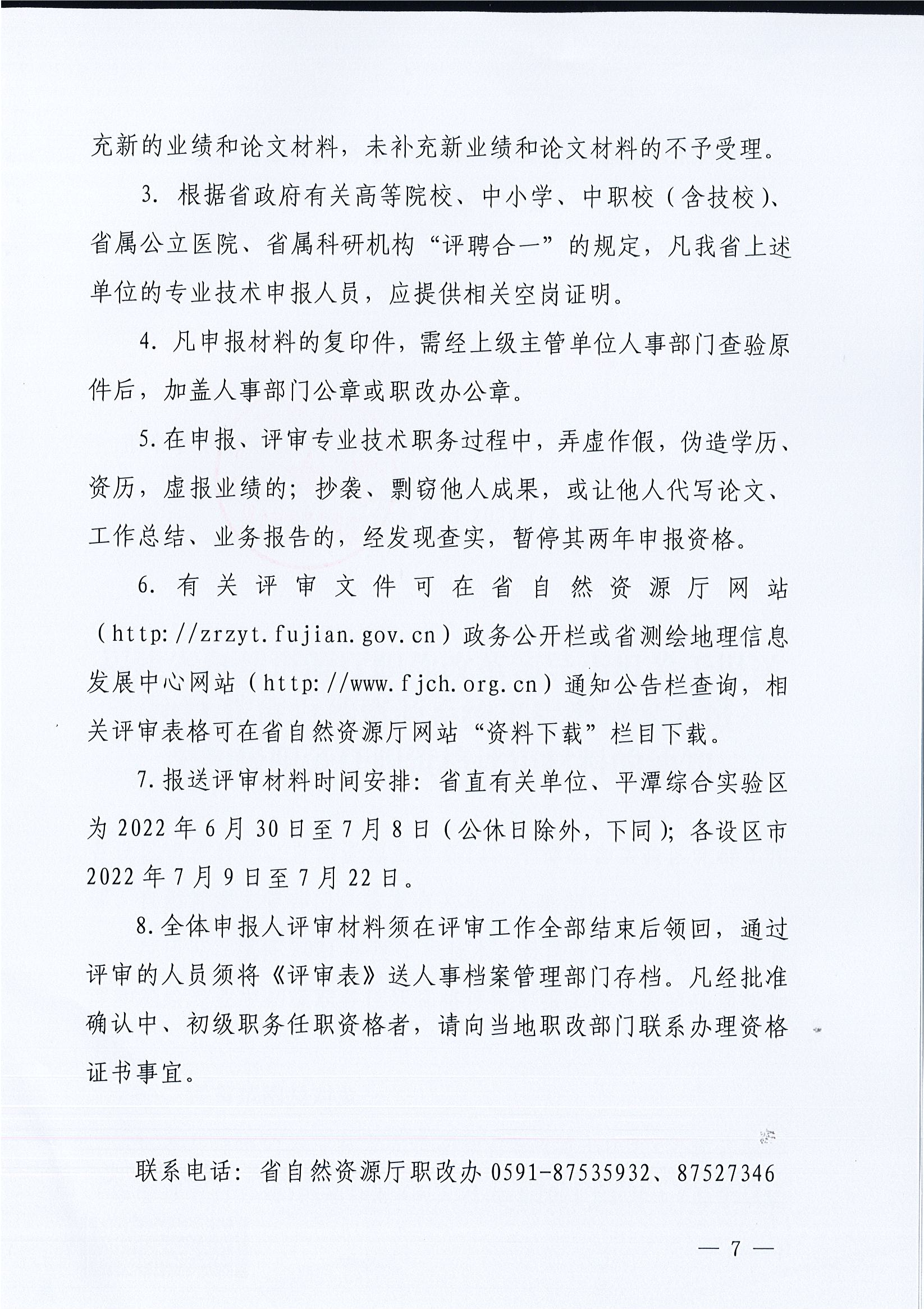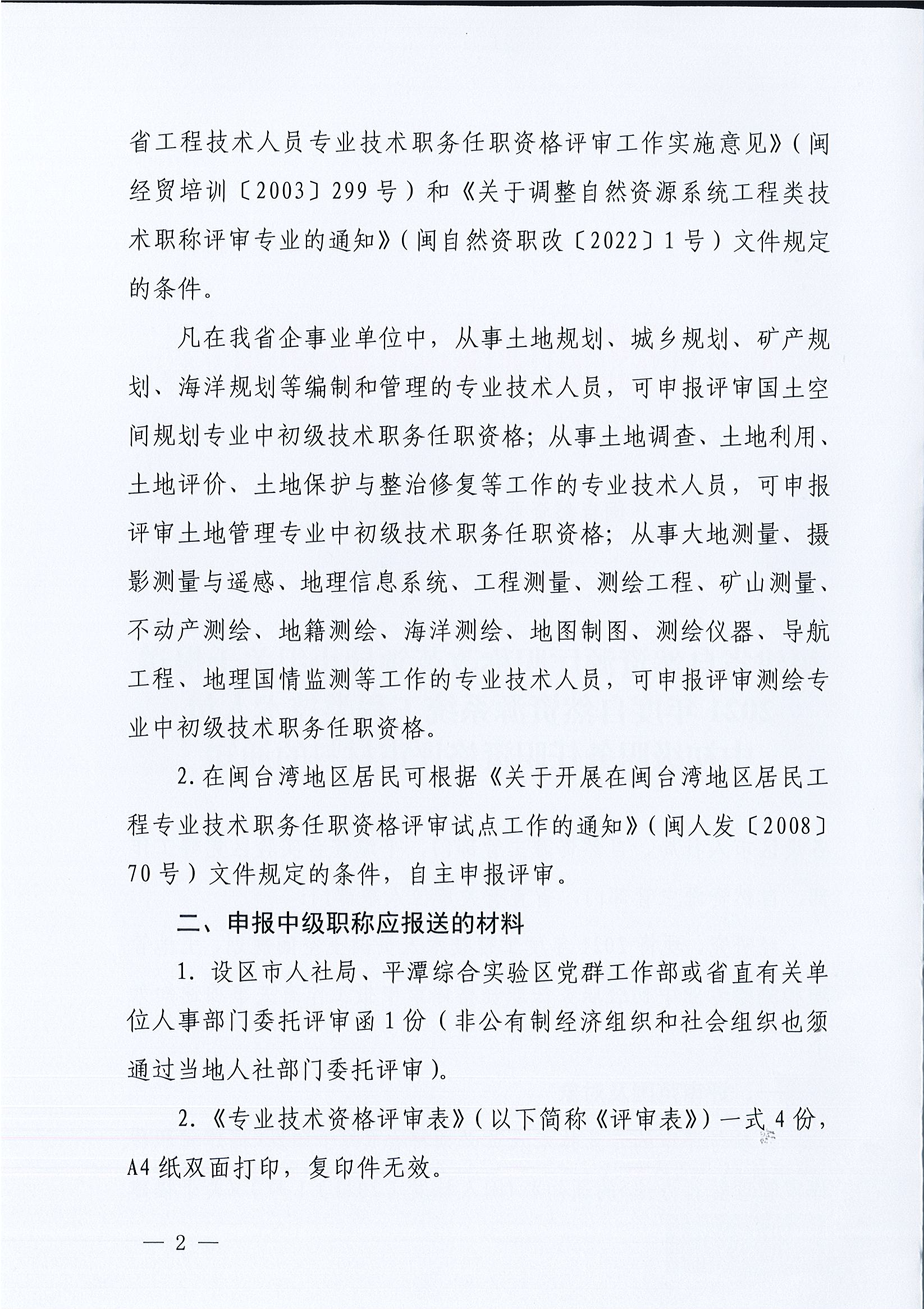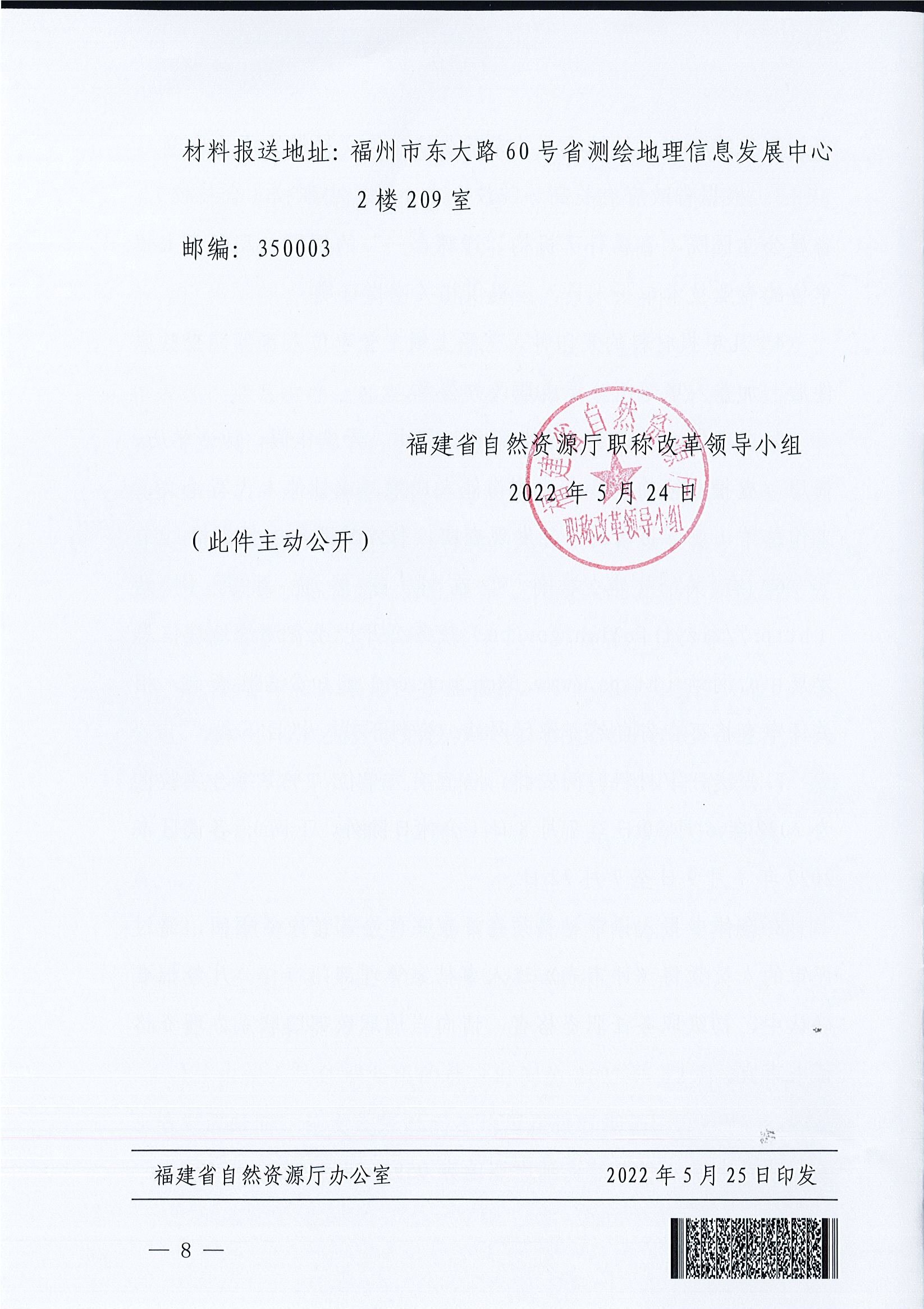 福建省自然资源厅职称改革领导小组福建省职称改革工作办公室关于报送2021年度自然资源系统工程类技术人员中初级职务任职资格评审材料的通知