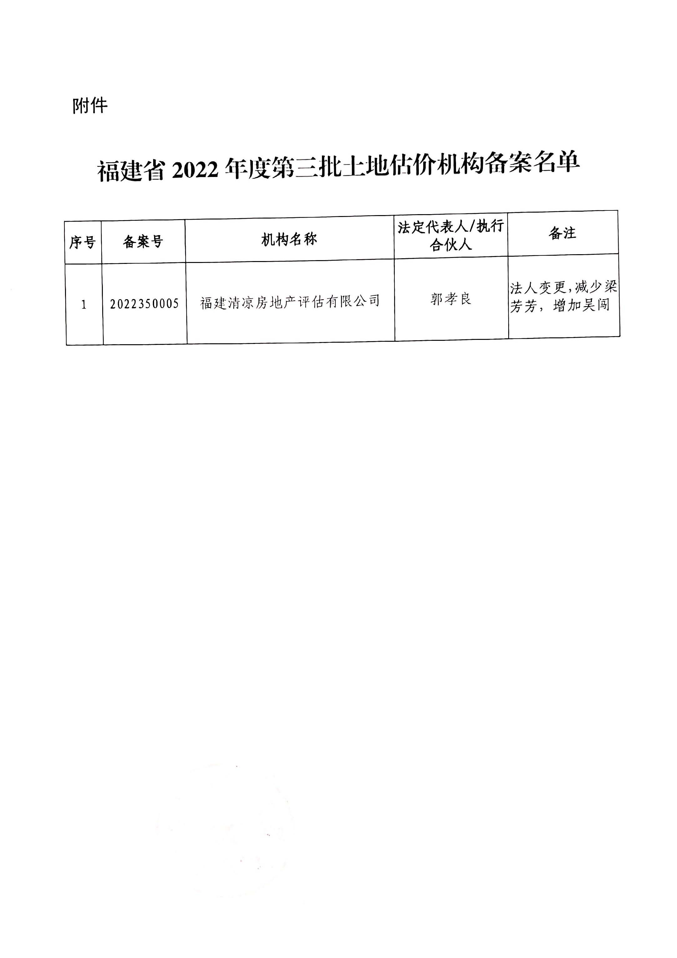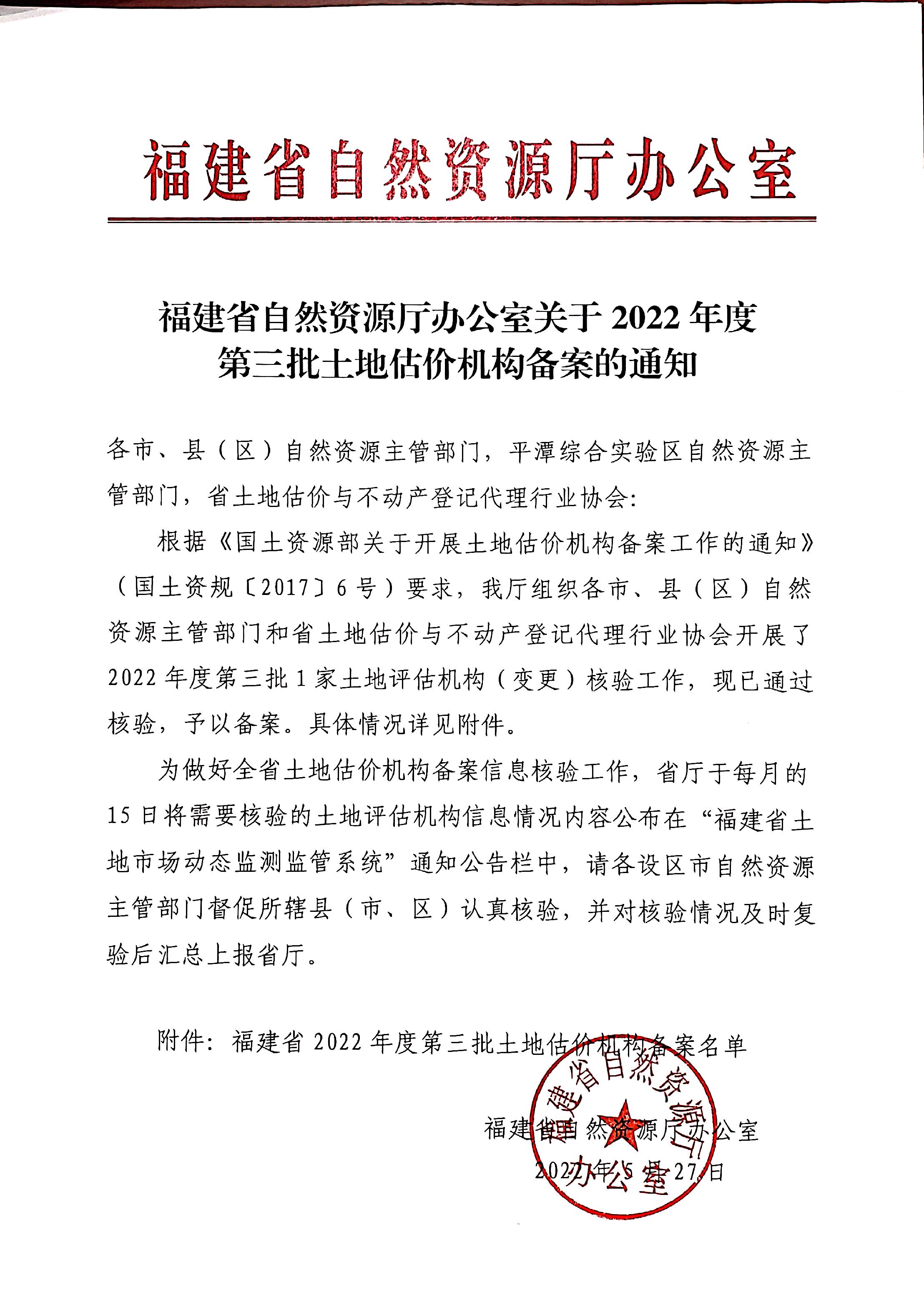 福建省自然资源厅办公室关于2022年度第三批土地估价机构备案的通知