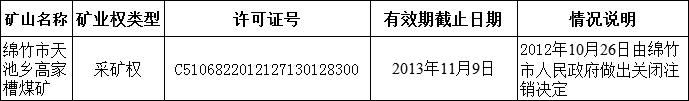 关于拟注销绵竹市天池乡高家槽煤矿采矿权的公告