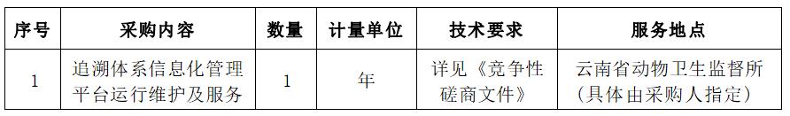 云南省动物卫生监督所追溯体系信息化管理平台运行维护及服务竞争性磋商公告