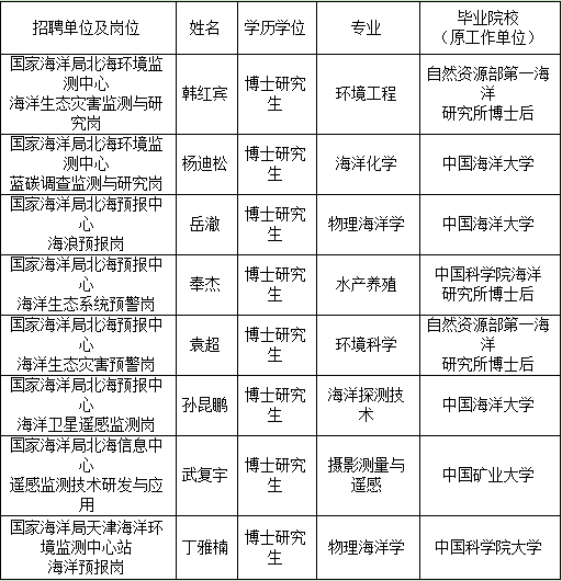 自然资源部北海局所属事业单位2022年公开招聘博士研究生拟聘人员公示