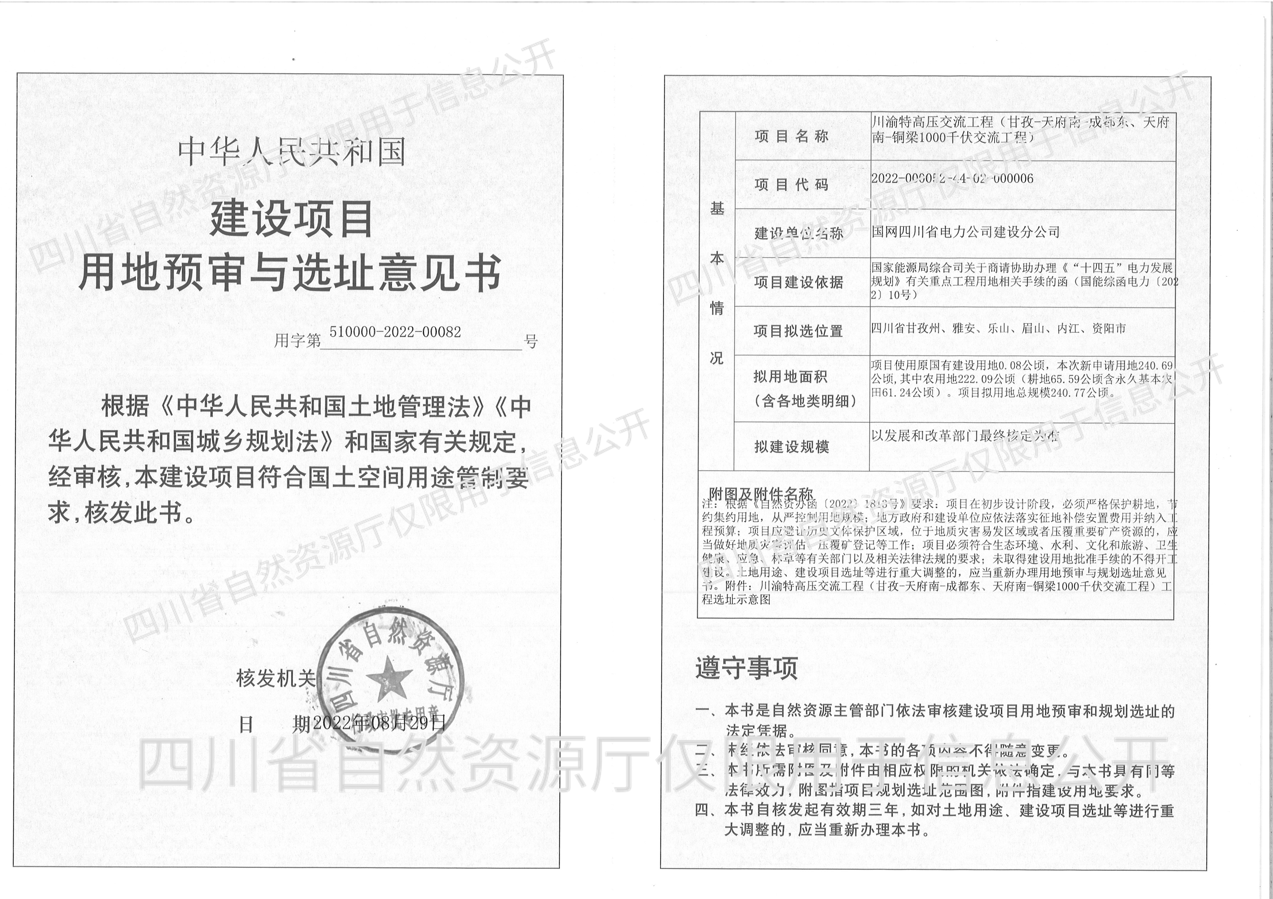 川渝特高压交流工程(甘孜—天府南—成都东、天府南—铜梁1000千伏交流工程)