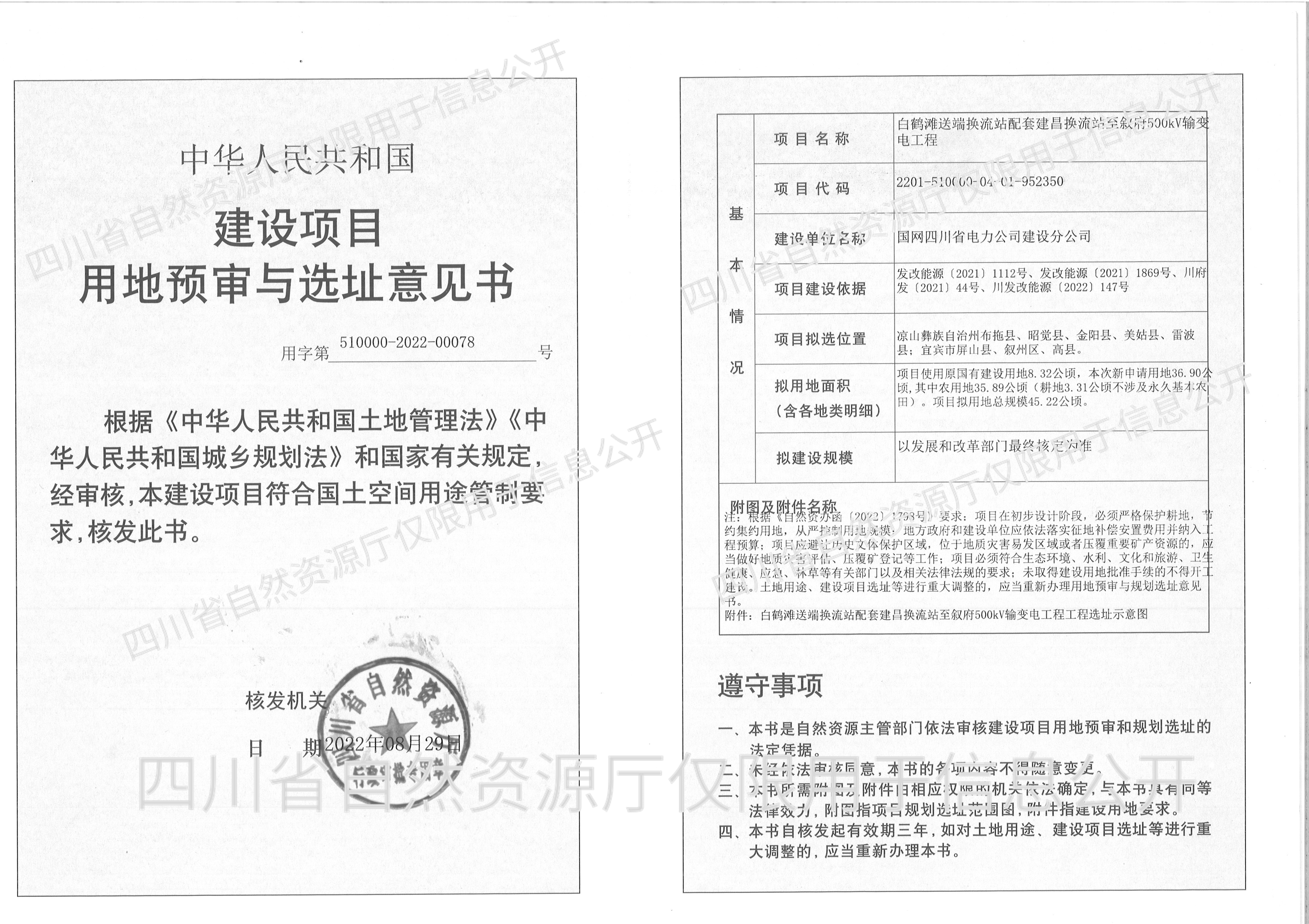 白鹤滩送端换流站配套建昌换流站至叙府500KV输变电工程