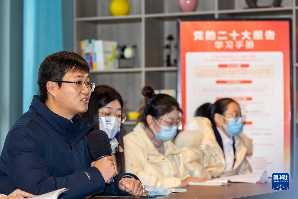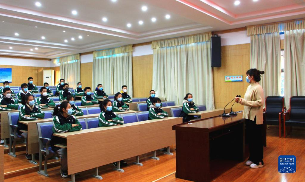 12月5日,在山东省枣庄市第八中学,枣庄市薛城区委宣讲团举办“青草学堂”宣讲活动,把党的二十大精神送进学校。新华社发