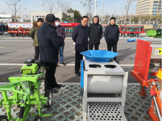12月1日上午,省农业农村厅副厅长、一级巡视员杨增权赴宿州市农科院,对宿州市推进乡村振兴、开展“两强一增”行动情况进行实地调研。杨增权首先参观了宿州市自主研发的农机具展示现场,对久力机械研发的两款大豆玉米带状复合种植播种机给予高度评价,指出今年是我省实施大豆玉米带状复合种植的第一年,复合种植成效明显,复合种植播种机械发挥了积极作用。随后,杨增权参观了乡村振兴农产品展示现场,观看了宿州市“两强一增”行动宣传片,听取了符离集烧鸡、砀山酥梨、预制菜肴等产品介绍,对宿州市今年以来在开展“两强一增”行动上取得的成效给予肯定,并指出要加大优质农产品宣传推广力度,打响宿美品牌。