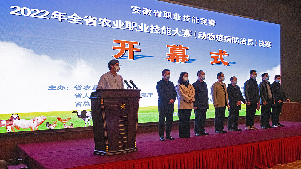 省农业农村厅副厅长、一级巡视员杨增权出席开幕式发表讲话并宣布大赛开始。省农林水利气象工会主席孙国平致辞。省人社厅,厅人事处、厅兽医处、厅机关党委、厅工会、省动物疫控中心等相关部门负责人参加开幕式。