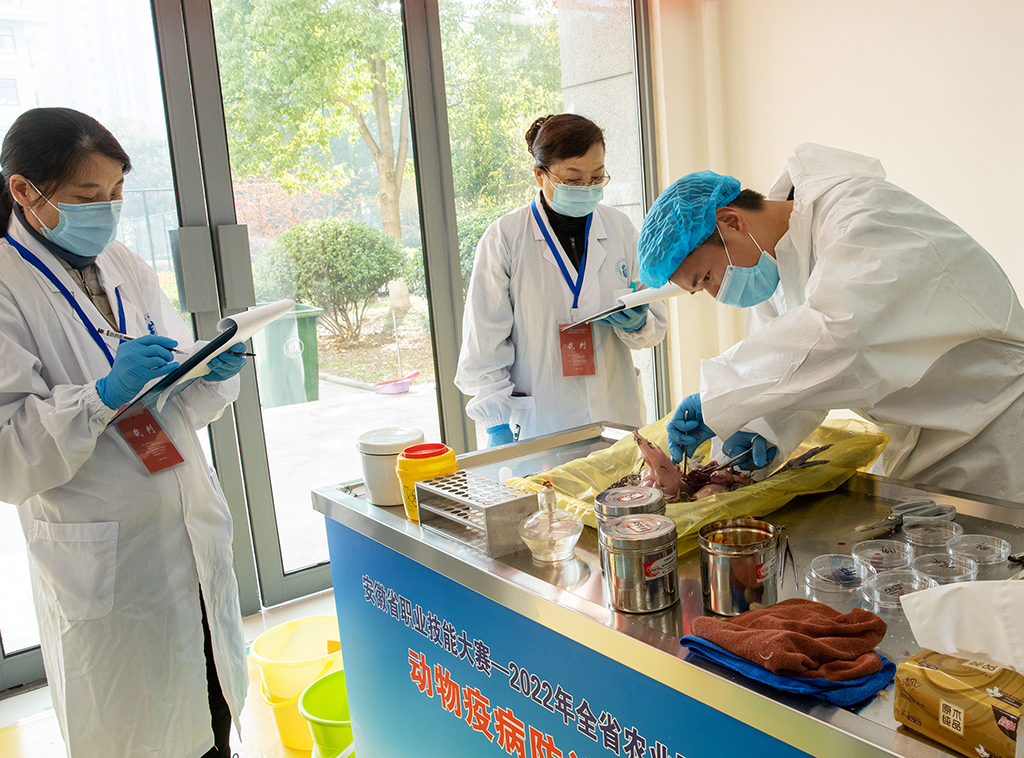 11月23-24日,由省农业农村厅、省人力资源和社会保障厅、省总工会联合主办,省动物疫控中心、省技能人才管理服务中心、省农林水利气象工会承办的2022年全省农业职业技能大赛(动物疫病防治员)决赛在合肥市举行,这是我省举办的第七届动物疫病防治员技能竞赛。全省15个市和2个省直管县(市)17个代表队共51名选手参加了本次决赛。