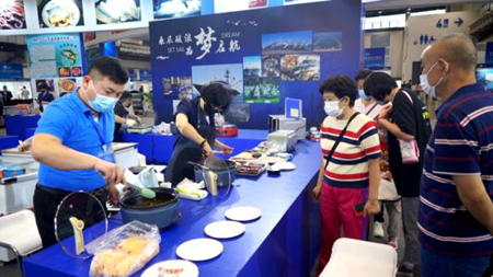 本次海博会适逢我省远洋渔业发展35周年,省农业农村厅设立了山东省远洋渔业成果展区,系统展示山东省远洋渔业发展壮大、转型升级、产业链融合、规范履约等方面的发展成就。专场推介活动以“品山东远洋自捕,享蓝色饕餮盛宴”为主题,组织山东省中鲁远洋渔业股份有限公司、蓬莱京鲁渔业有限公司、靖海集团有限公司、荣成市赤山远洋渔业有限公司、山东蓝越远洋渔业有限公司和荣成市海洋渔业有限公司6家远洋渔业龙头企业,集中优势资源,汇集金枪鱼、鱿鱼、秋刀鱼和磷虾四个大类远洋自捕水产品和数百种基于自捕水产品的加工品及预制菜产品,宣传山东省远洋渔业行业整体形象和品类丰富的远洋产品。现场举办了金枪鱼解体秀、品鉴和专家讲解等科普活动,得到了组委会和到会展商的一致好评,各类深海远洋渔业产品受到诸多参观者的青睐,场面火爆,成为展会最具特色的一道风景线。荣成沙窝岛国家远洋渔业基地在现场进行了专题招商推介。