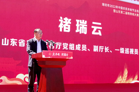 9月22日至23日,“庆丰收·迎盛会”山东第二届晚熟桃大赛在青州市成功举办,省农业农村厅党组成员、副厅长、一级巡视员褚瑞云出席活动并致辞。