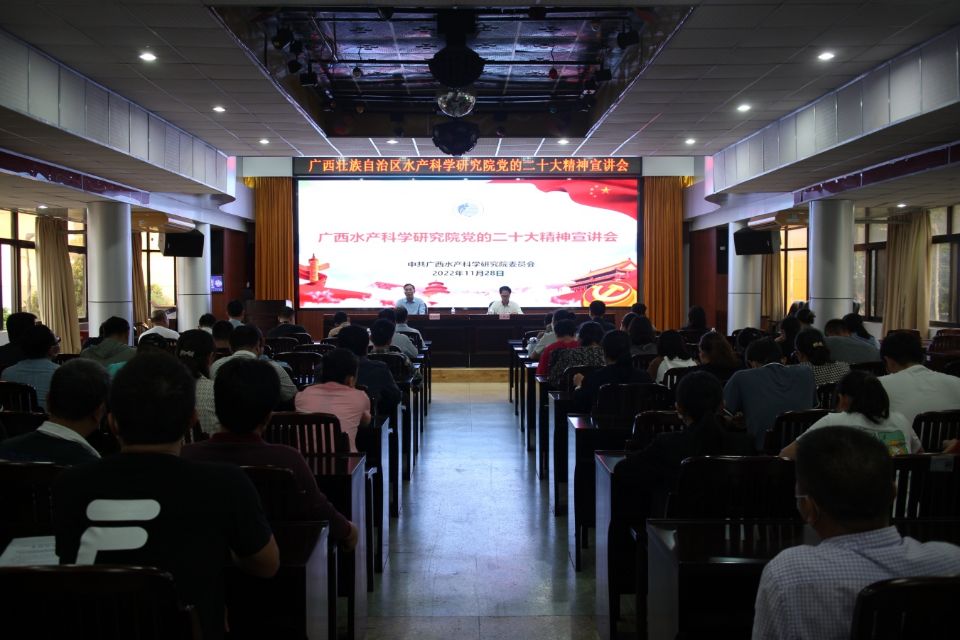 广西水产科学研究院全体党员干部职工参加宣讲报告会。