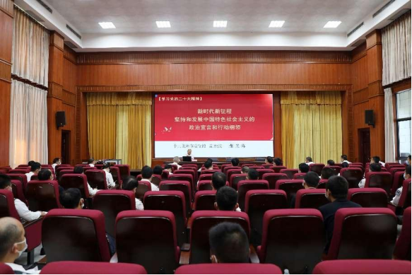 本次培训邀请到中共北海市委党校经济与法学教研部、市委中心组学习党组成员张光辉教授就《新时代 新征程坚持和发展中国特色社会主义的政治宣言和行动纲领》做专题授课辅导。张教授紧密结合习近平总书记视察广西4·27重要讲话精神和对广西工作系列重要指示要求,围绕党的二十大报告,全面介绍了党的二十大的主题和重大意义,精准阐述了党的二十大报告的整体框架,深入分析了党的二十大报告的核心要义和精神实质,详细解读了习近平新时代中国特色社会主义思想的世界观和方法论、以中国式现代化全面推进中华民族伟大复兴的使命任务、党的二十大作出的各项战略部署等重要内容。