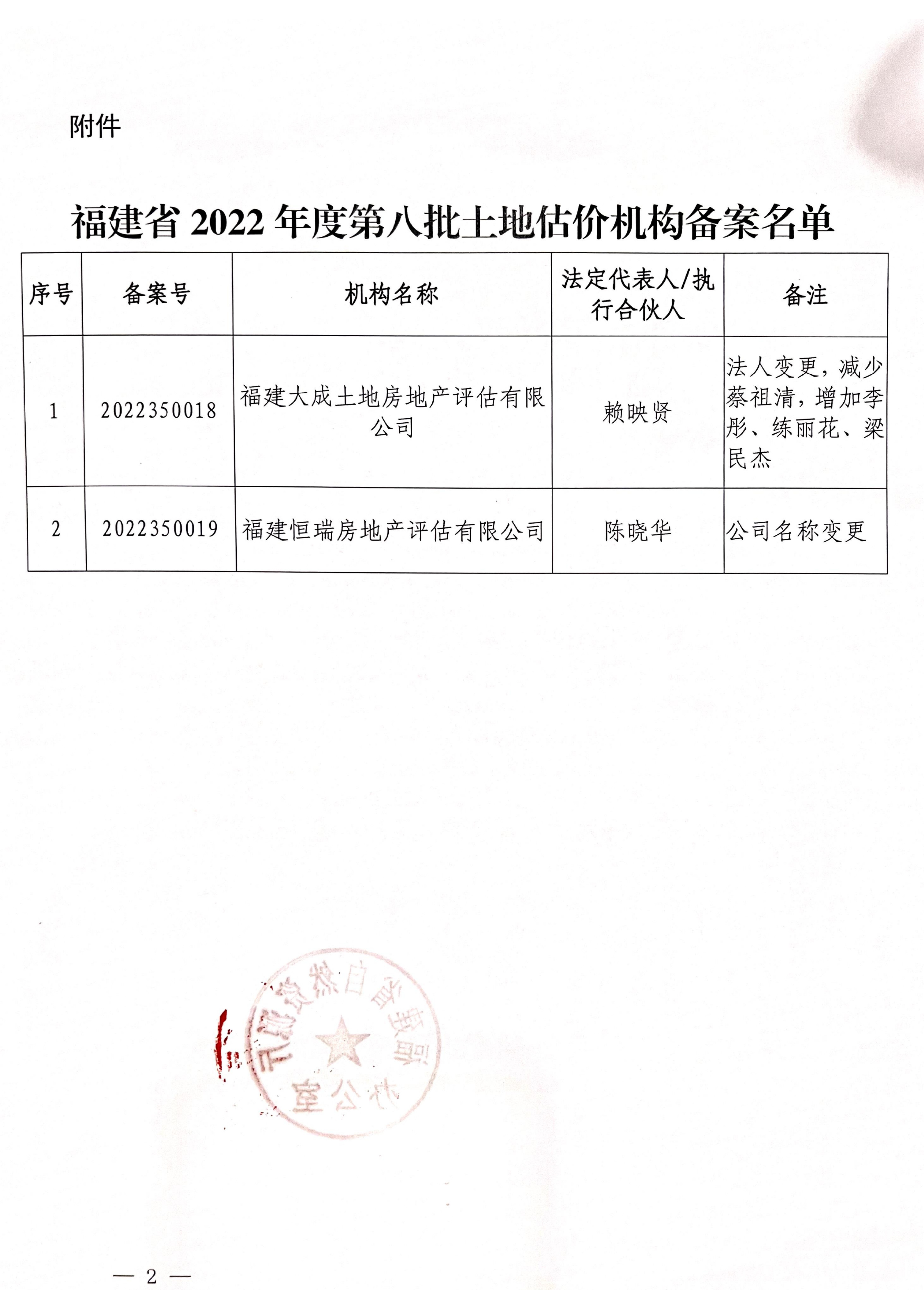 福建省自然资源厅办公室关于2022 年度第八批土地估价机构备案的通知