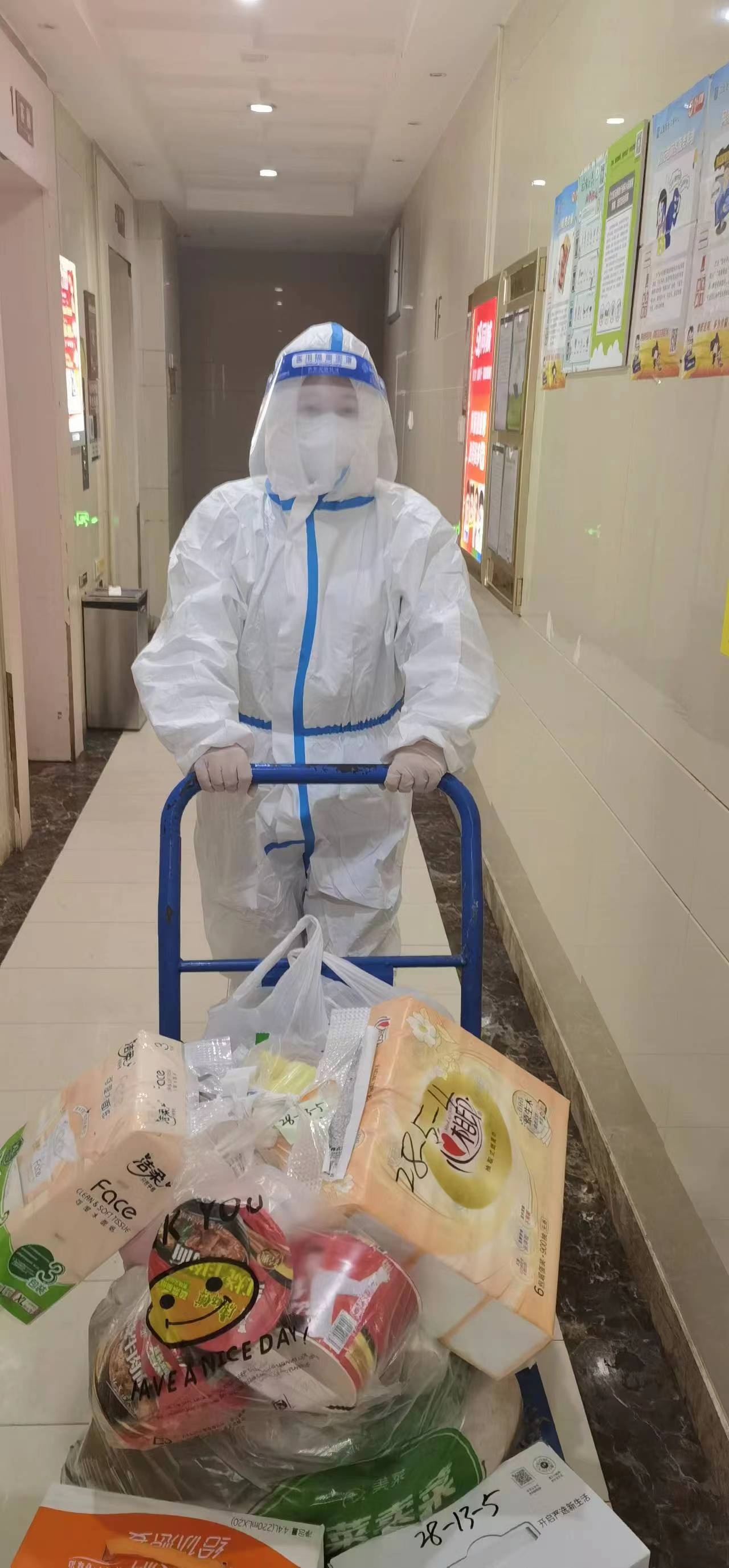 这里老旧楼栋较多,多数没有电梯,他拧着重重的生活物资从1楼爬到7楼。狭小的楼道,充满消毒液的味道,长久提着重重的口袋,手上勒出一道道深深的痕迹,他仍然咬咬牙继续坚持。送完物资,他再回到值守点,挑灯夜战,核对居民数据,整理工作台账。他说:“虽然干得比较累,但看到群众满意的笑脸,却都感到十分欣慰”。
