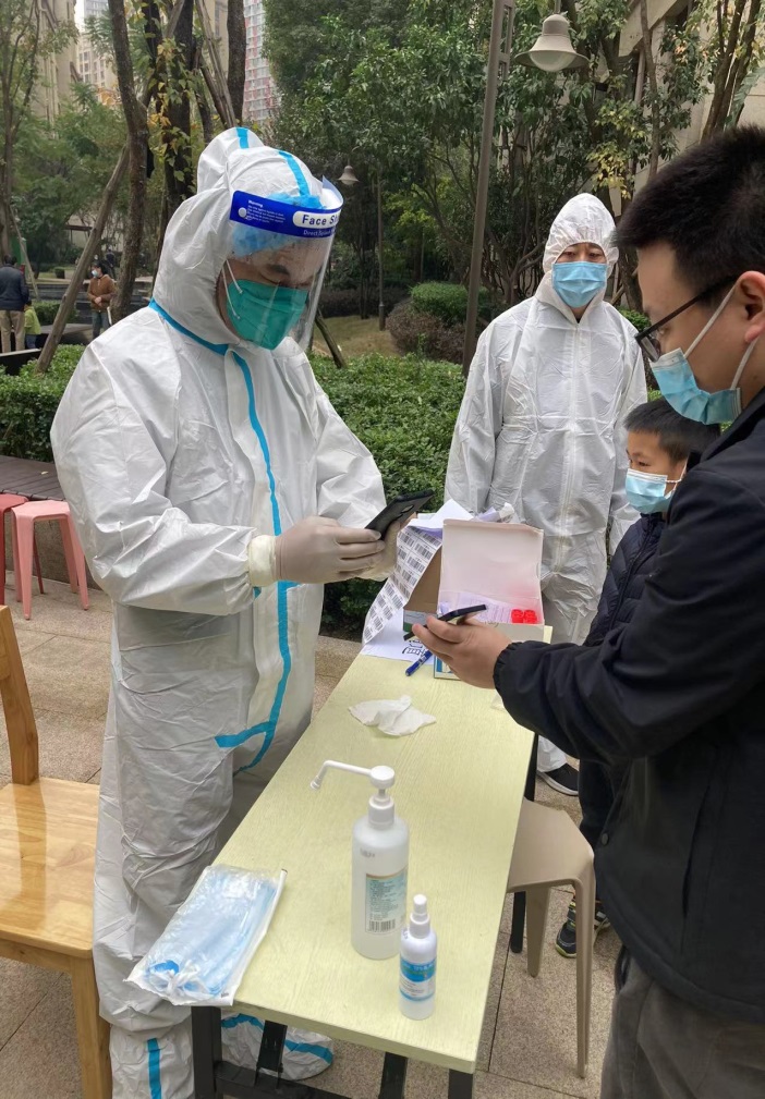 疫情袭来,办公室曾月强同志主动请缨,成为沙坪坝区石碾盘社区联络员、东原ARC下沉党员临时党支部书记。