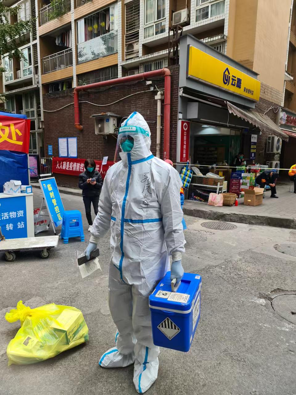 范 永洋于11月11日主动向沙坪坝区天星桥街道小正街社区报到,协助社区干部全面统筹疫情防控工作,调度防疫人员、配送物资,核查楼栋人口居住情况,参加核酸检测信息采集、防疫宣传、区域巡逻、物资转运等工作,半个月以来,每天都是14个小时的“连轴转”。截至目前,范永洋协助所在社区共完成核酸检测信息采集超过2万条、参与完成12个小区100余栋楼梯房和20余栋电梯楼信息核对工作,转运阳性感染人员5人、密接者97人。11月14日后,他除了完成日常核酸检测信息录入外,每天还负责高风险区(制药三厂)38栋无电梯单元楼近650余户居民的生活物资搬运保障工作,以及20点至24点的社区日常巡逻工作,用实际行动践行了共产党员的初心与担当,为疫情防控一线筑起了一道牢固的志愿者屏障。