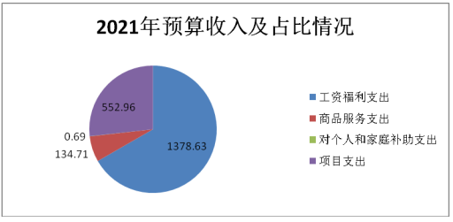 2021年财政拨款收入2066.99万元,其中:工资福利支出1378.63万元;对个人和家庭补助支出0.69万元;日常公用经费支出134.71万元;项目收入552.96万元。