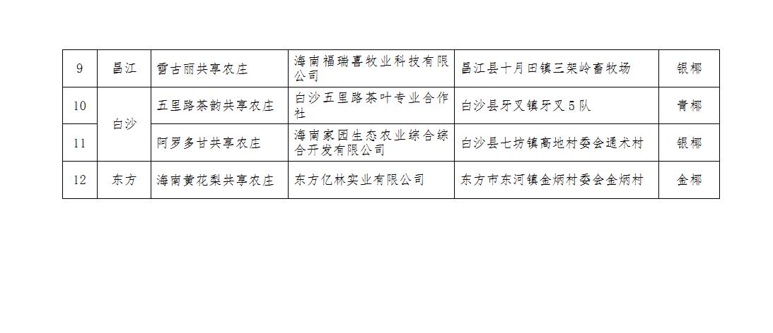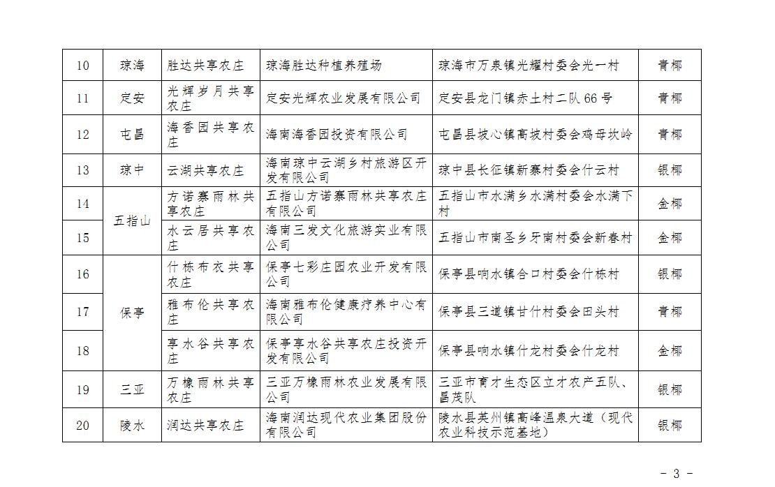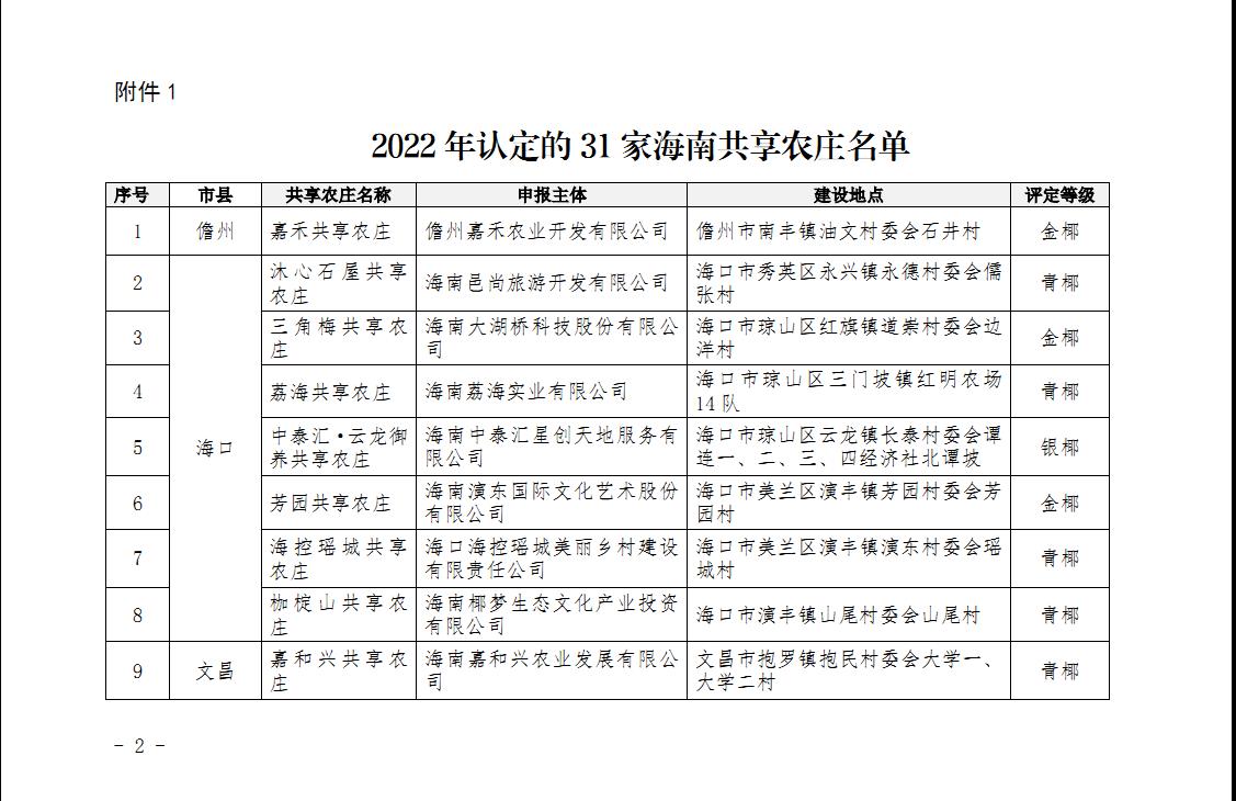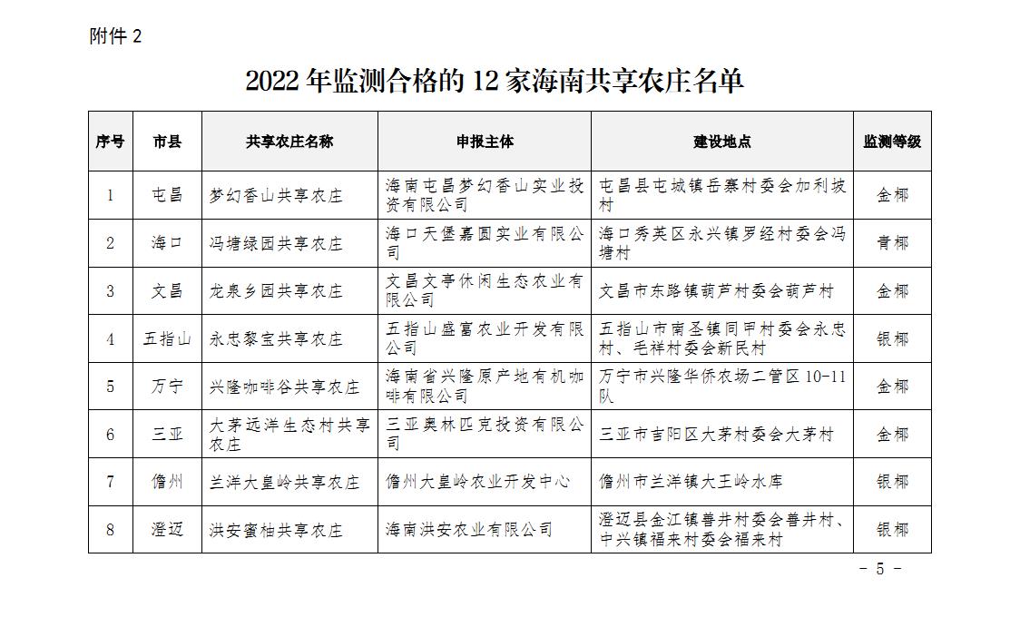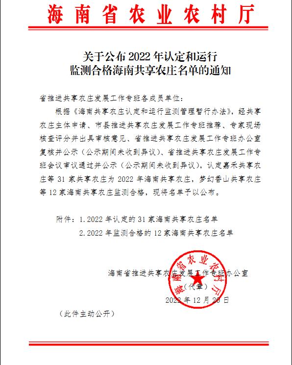 关于公布2022年认定和运行监测合格海南共享农庄名单的通知