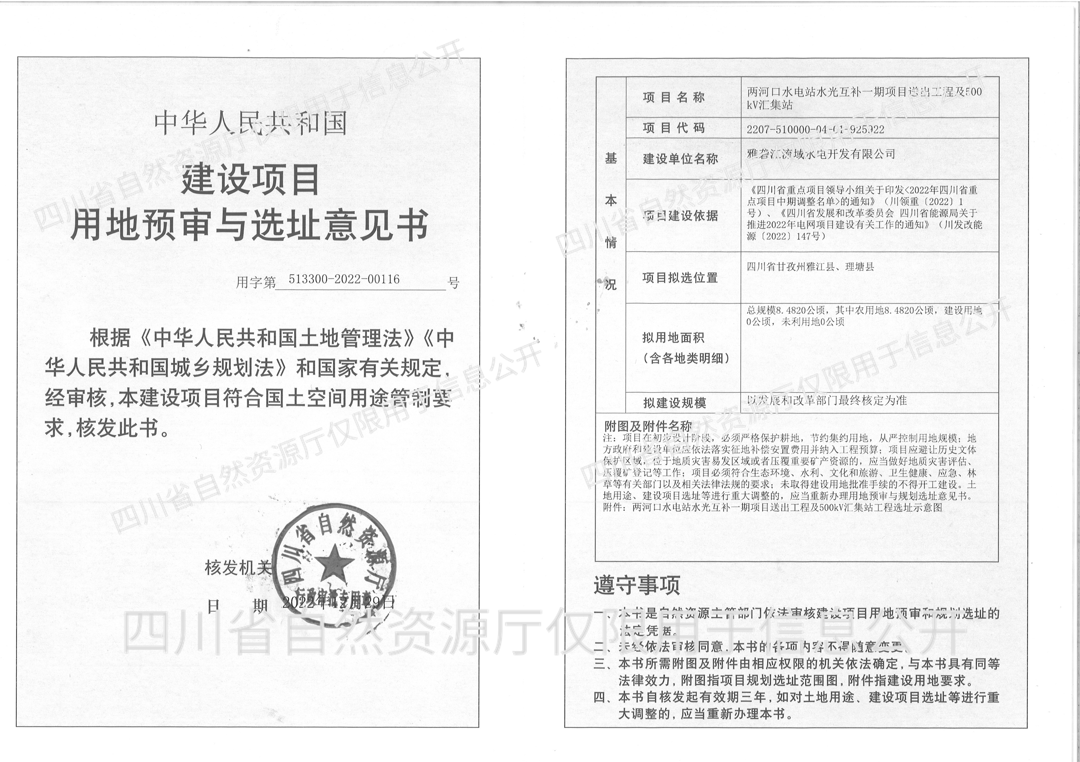 两河口水电站水光互补一期项目送出工程及500KV汇集站