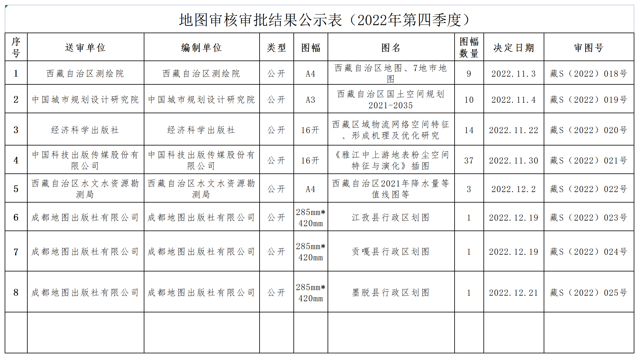 地图审核审批结果公示表(2022年第四季度)