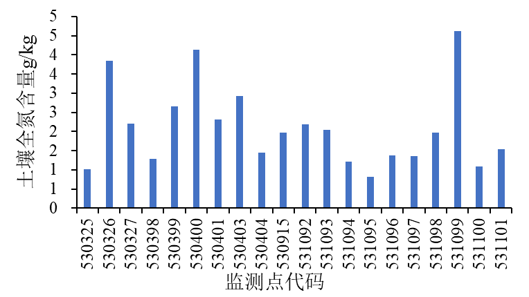 图3 2022年各监测点常规施肥区土壤全氮含量情况
